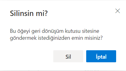 Silme işlemi ile ilgili onay arayüzü görüntülenir. “Sil” seçeneği ile devam edilir.