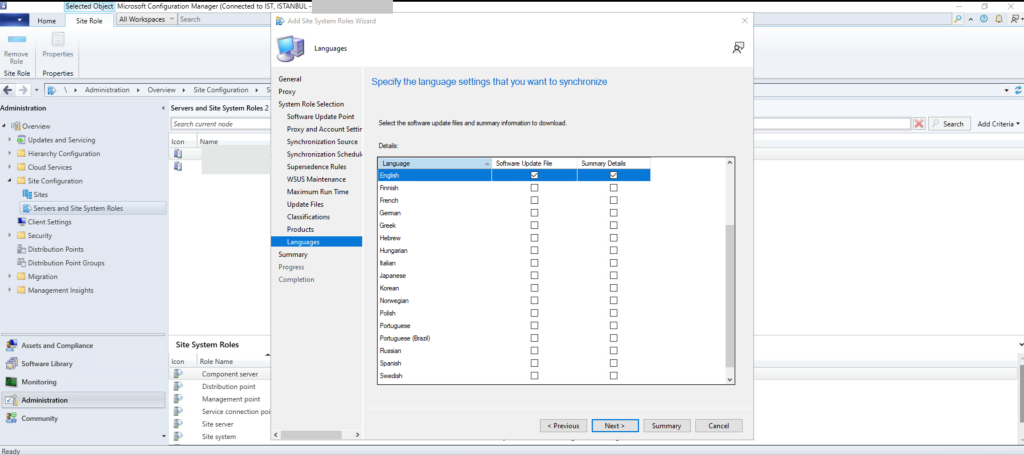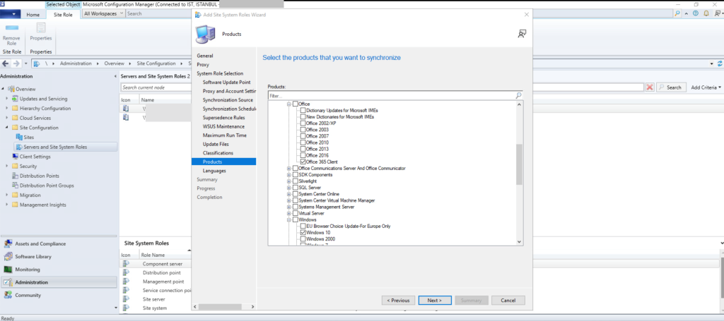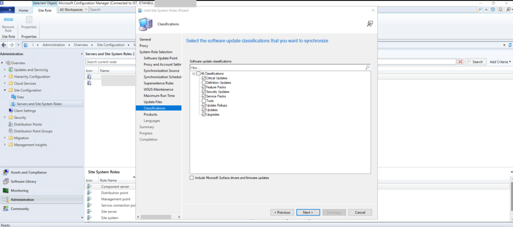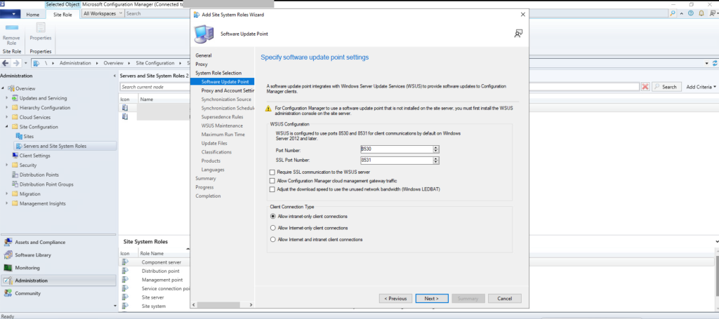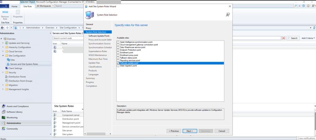 System Role Selection ekranında Software Update Point rolünü işaretleyin.