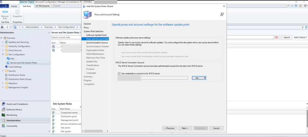 Proxy ve WSUS bağlantı hesabı ayarlarını yapılandırın.