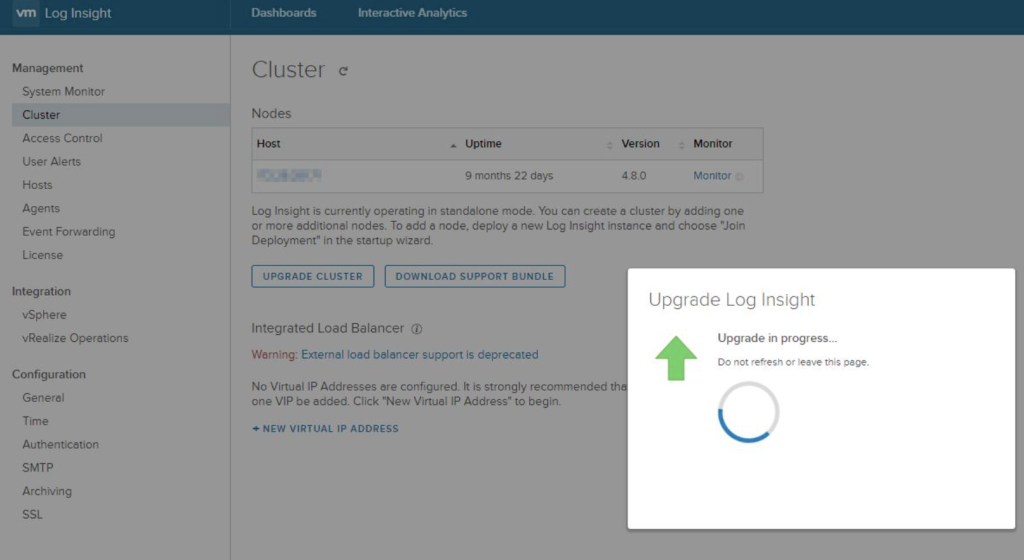 Merhaba arkadaşlar bu yazımızda sizlere vRealize Log Insight ürünün 4.8 versiyonundan 8.0 versiyonuna upgrade işleminden bahsedeceğiz.